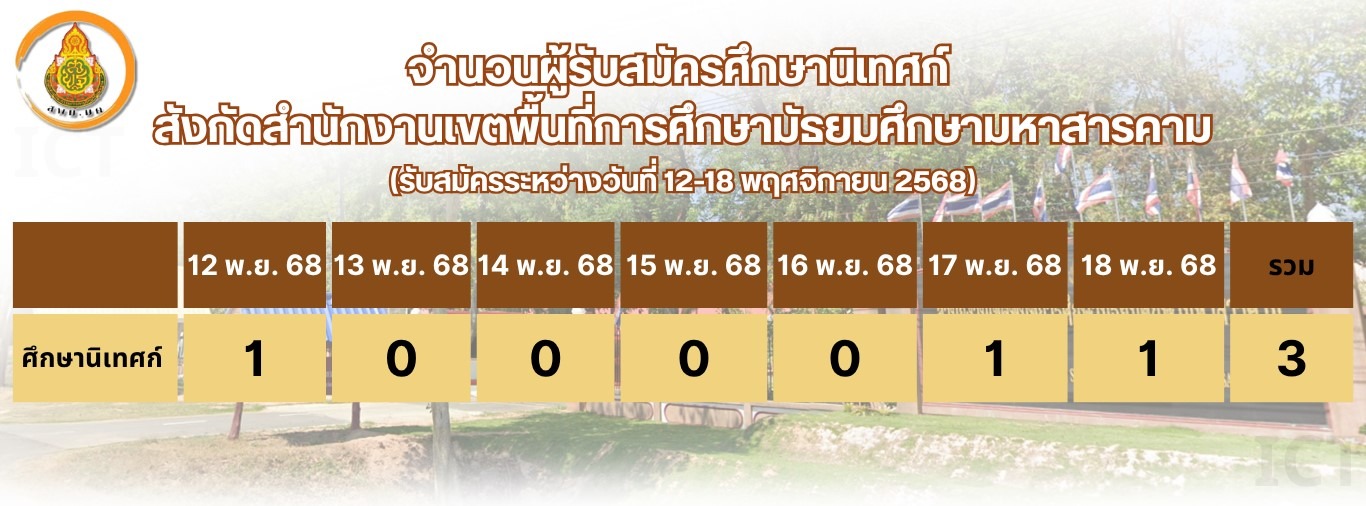ประกาศสำนักงานเขตพื้นที่การศึกษามัธยมศึกษามหาสารคาม เรื่อง รายชื่อผู้มีสิทธิและไม่มีสิทธิเข้ารับการคัดเลือกเป็นพนักงานจ้างเหมาบริการ ตำแหน่งครูผู้สอนภาษาจีนสังกัดสำนักงานเขตพื้นที่การศึกษามัธยมศึกษามหาสารคาม