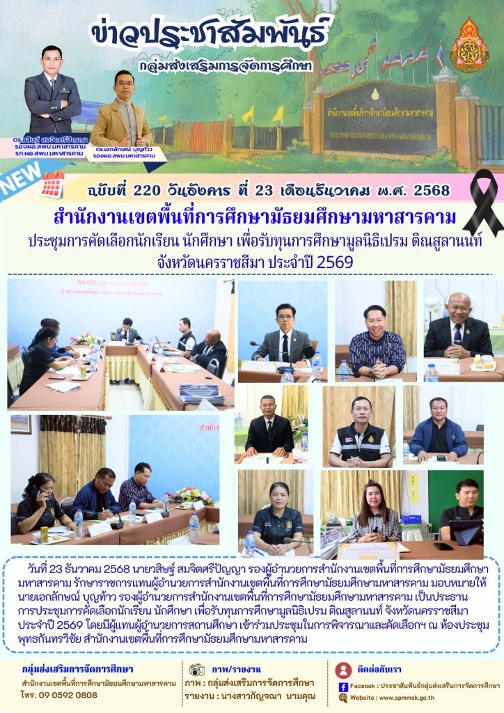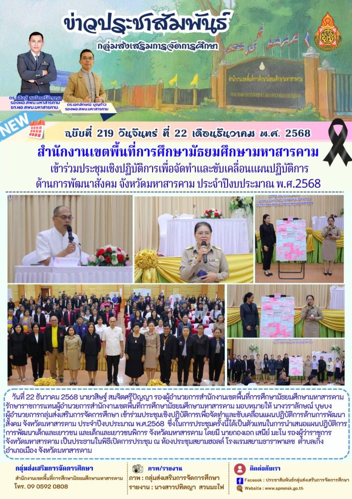 การประชุมเชิงปฏิบัติการการจัดทำแผนปฏิบัติการประจำปีงบประมาณ พ.ศ.2569 ของสำนักงานเขตพื้นที่การศึกษามัธยมศึกษามหาสารคาม