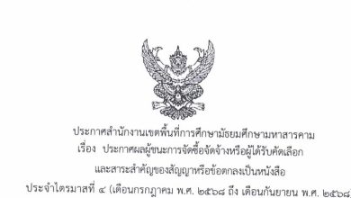 ประกาศสำนักงานเขตพื้นที่การศึกษามัธยมศึกษามหาสารคาม เรื่อง ประกาศผลผู้ชนะการจัดซื้อจัดจ้างหรือผู้ได้รับคัดเลือกและสาระสำคัญของสัญญาหรือข้อตกลงเป็นหนังสือประจำไตรมาสที่ 4 (เดือนกรกฎาคม พ.ศ. 2568 ถึงเดือนกันยายน พ.ศ. 2568)