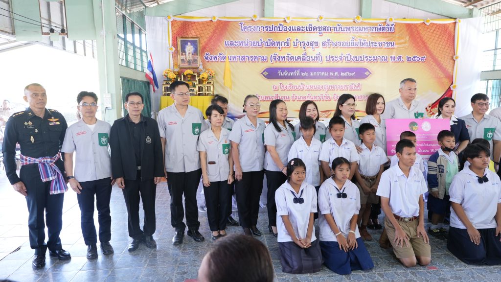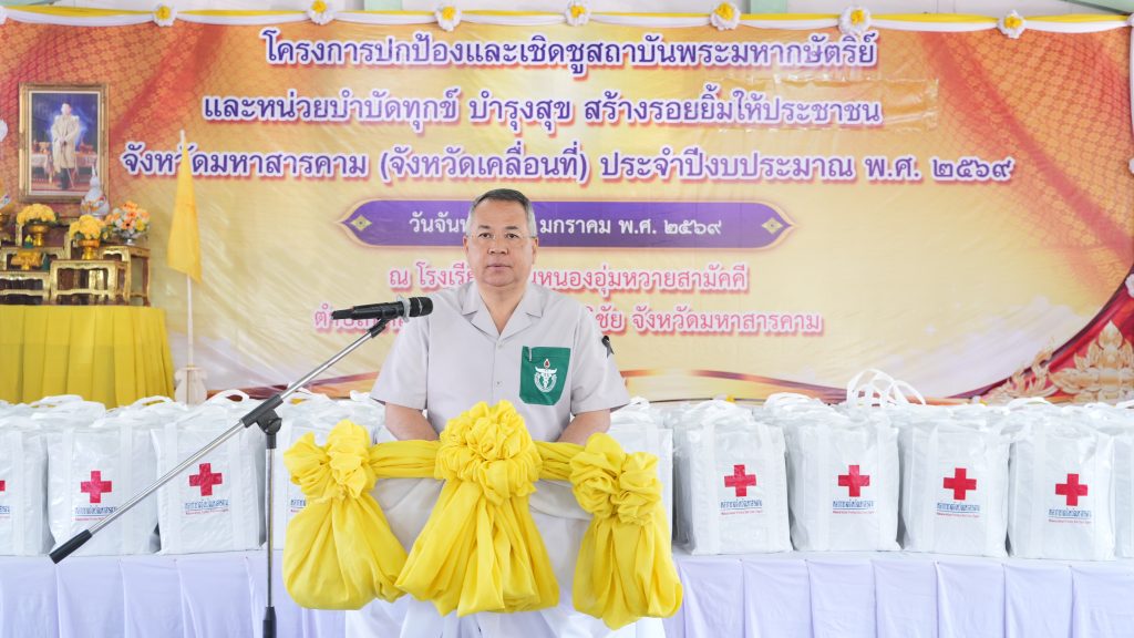 ในการนี้ นายอดุลย์ ภูปลื้ม ผู้อำนวยการสำนักงานเขตพื้นที่การศึกษามัธยมศึกษามหาสารคาม มอบหมายให้ นายเอกลักษณ์ บุญท้าว รองผู้อำนวยการสำนักงานเขตพื้นที่การศึกษามัธยมศึกษามหาสารคาม พร้อมด้วย บุคลากรกลุ่มบริหารงานบุคคล ทั้งนี้มีผู้บริหารสถานศึกษา ข้าราชการครูและบุคลากรทางการศึกษาในสังกัดสำนักงานเขตพื้นที่การศึกษามัธยมศึกษามหาสารคาม ร่วมโครงการปกป้อง และเชิดชูสถาบันพระมหากษัตริย์ และหน่วยบำบัดทุกข์ บำรุงสุข สร้างรอยยิ้มให้ประชาชนจังหวัดมหาสารคาม (จังหวัดเคลื่อนที่) ณ บริเวณโรงเรียนบ้านหนองอุ่มหวายสามัคคี ตำบลนาสีนวนอำเภอกันทรวิชัยจังหวัดมหาสารคาม
