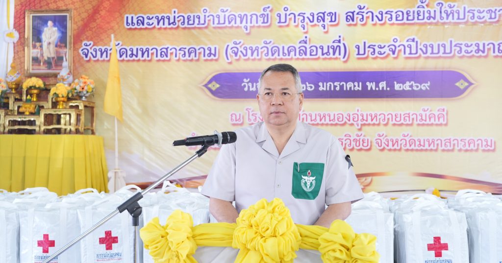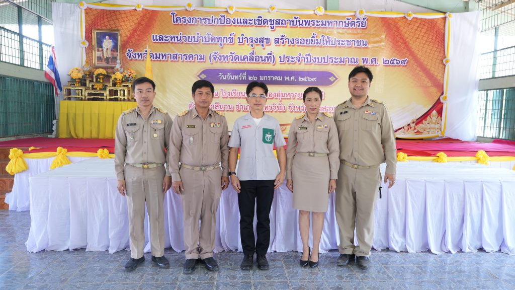 จังหวัดมหาสารคาม จัดโครงการปกป้อง และเชิดชูสถาบันพระมหากษัตริย์ และหน่วยบำบัดทุกข์ บำรุงสุข สร้างรอยยิ้มให้ประชาชนจังหวัดมหาสารคาม (จังหวัดเคลื่อนที่) ประจำปีงบประมาณ พ.ศ.2569 โดยนายชุมพิชญ์ เดชะรัฐ ผู้ว่าราชการจังหวัดมหาสารคาม เป็นประธานเปิดโครงการฯ พร้อมด้วย ส่วนราชการในระดับจังหวัด และอำเภอ ออกหน่วยให้บริการประชาชน เพื่ออำนวยความสะดวกและลดภาระค่าใช้จ่ายให้กับประชาชน รวมถึงพบปะประชาชน พร้อมรับฟังรายงานข้อมูลการดำเนินงานในท้องถิ่น และรับฟังปัญหาความต้องการต่างๆ ของประชาชนโดยมีประชาชนในพื้นที่ อำเภอกันทรวิชัย และพื้นที่ใกล้เคียงเข้ารับบริการเป็นจำนวนมาก