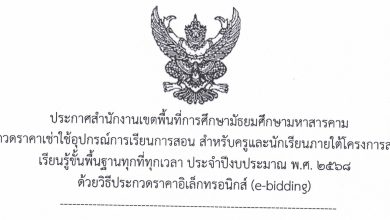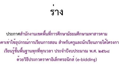 ประกาศ สำนักงานเขตพื้นที่การศึกษามัธยมศึกษามหาสารคามเรื่อง ประกวดราคาเช่าใช้อุปกรณ์การเรียนการสอน สำหรับครูและนักเรียนภายใต้โครงการ ส่งเสริมการเรียนรู้ขั้นพื้นฐานทุกที่ทุกเวลา ประจำปีงบประมาณ พ.ศ. ๒๕๖๘ ด้วยวิธีประกวดราคา อิเล็กทรอนิกส์ (e-bidding)